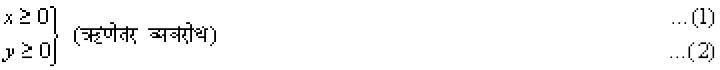 - 	lHkh O;ojks/ksa vkSj ½.ksrj O;ojks/ksa x ≥ 0, y ≥ 0 }kjk fu/kZfjr mHk;fu"B {ks=k] ,d js[kh; izksxzkeu leL;k dk lqlaxr {ks=k (;k gy leqPp;) dgykrk gSA