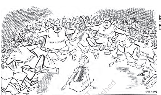 'स्ट्रगल फॉर सरवाइवल' (26 जुलाई 1953) शीर्षक यह कार्टून उस दौर के माहौल को दर्शाता है जब राज्यों को भाषाई आधार पर गठित करने की माँग ज़ोर पकड़ रही थी।