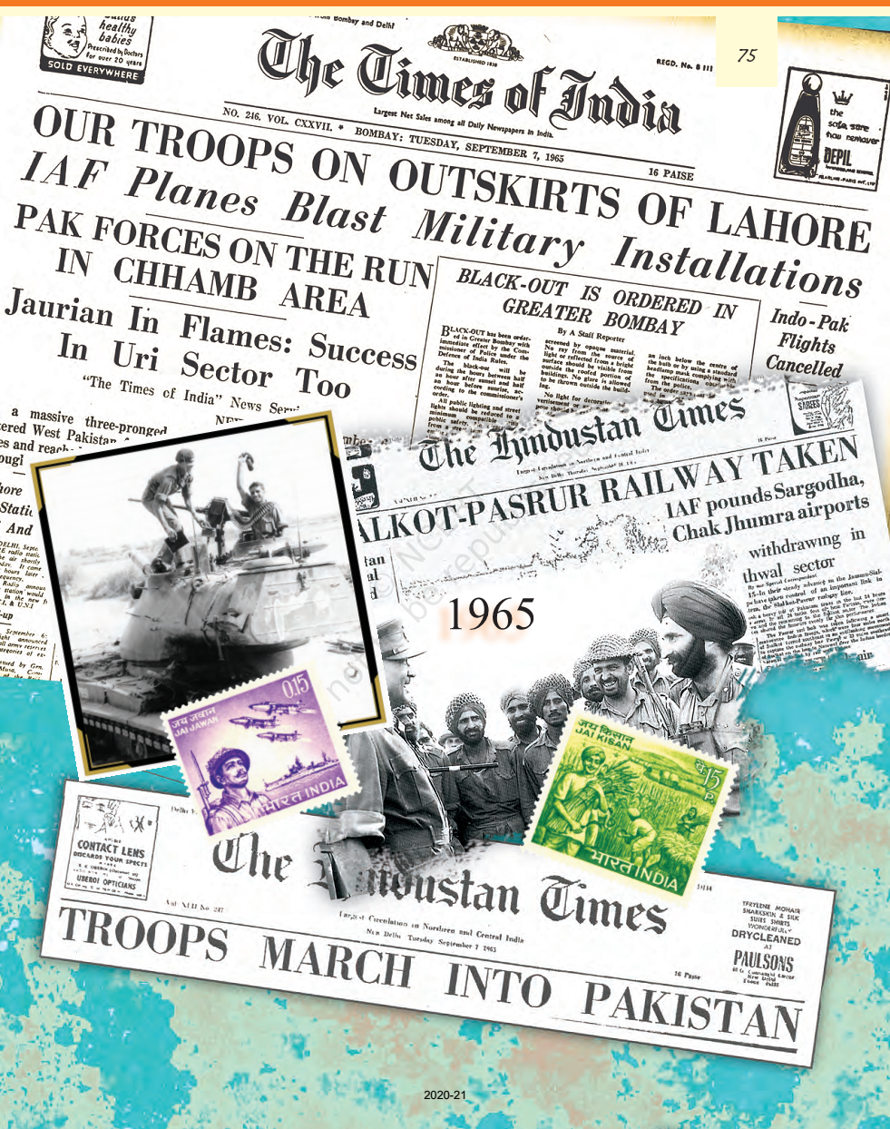 दोनों देशों के बीच 1965 में कहीं ज्यादा गंभीर किस्म के सैन्य-संघर्ष की शुरुआत हुई। आप अगले अध्याय में पढ़ेंगे कि इस वक्त लालबहादुर शास्त्री भारत के प्रधानमंत्री थे। 1965 के अप्रैल में पाकिस्तान ने गुजरात के कच्छ इलाके के रन में सैनिक हमला बोला। इसके बाद जम्मू-कश्मीर में उसने अगस्त-सितंबर के महीने में बड़े पैमाने पर हमला किया। पाकिस्तान के नेताओं को उम्मीद थी कि जम्मू-कश्मीर की जनता उनका समर्थन करेगी लेकिन ऐसा नहीं हुआ। कश्मीर के मोर्चे पर पाकिस्तानी सेना की बढ़त को रोकने के लिए प्रधानमंत्री लालबहादुर शास्त्री ने पंजाब की सीमा की तरफ से जवाबी हमला करने के आदेश दिए। दोनों देशों की सेनाओं के बीच घनघोर लड़ाई हुई और भारत की सेना आगे बढ़ते हुए लाहौर के नजदीक तक पहुँच गई।