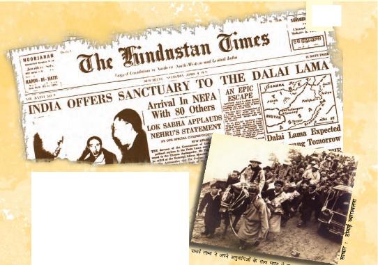 दलाई लामा ने अपने अनुयायिओं के साथ भारत से शरण की माँग की।
