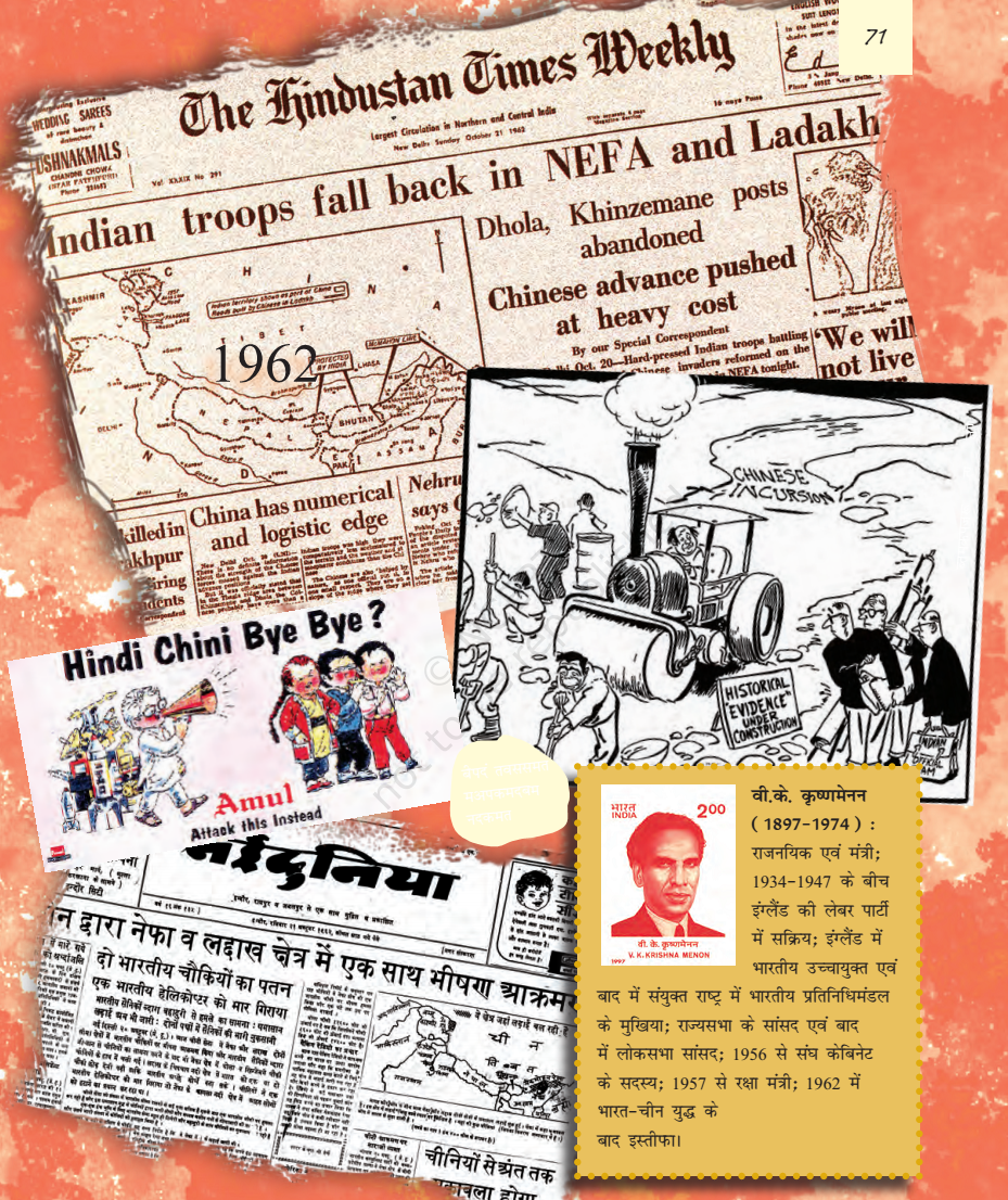 ' समकालीन विश्व राजनीति ' के पहले अध्याय में क्यूबा के मिसाइल-संकट की चर्चा की गई थी। क्या आपको इस घटना की याद है ? जिस समय पूरे विश्व का ध्यान दो महाशक्तियों की तनातनी से पैदा इस संकट की तरफ लगा हुआ था , ठीक उसी समय चीन ने 1962 के अक्तूबर में दोनों विवादित क्षेत्रों पर बड़ी तेज़ी तथा व्यापक स्तर पर हमला किया। पहला हमला एक हफ्ते तक चला और इस दौरान चीनी सेना ने अरुणाचल प्रदेश के कुछ महत्त्वपूर्ण इलाकों पर कब्जा कर लिया। हमले का अगला दौर नवंबर महीने में शुरू हुआ। लद्दाख से लगे पश्चिमी मोर्चे पर भारतीय सेना ने चीन की बढ़त रोकी लेकिन पूर्व में चीनी सेना आगे बढ़ते हुए असम के मैदानी हिस्से के प्रवेशद्वार तक पहुँच गई। आखिरकार , चीन ने एकतरफा युद्धविराम घोषित किया और चीन की सेनाएँ उस मुकाम पर लौट गईं जहाँ वे हमले से पहले के वक्त में तैनात थीं।