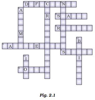 Solve the cross-word puzzle gi9ven as Fig. 2.1 from the clues given below.