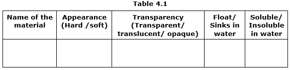 Sugar, salt, mustard oil, sand, sawdust, honey, chalk powder, petals of flower, soil, copper sulphate crystals, glucose, wheat flour are some substances given to paheli. She wants to know whether these substances are soluble in water or not. Help her in identifying soluble and insoluble substances in water.