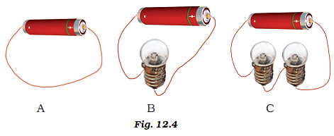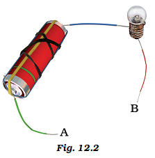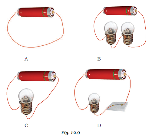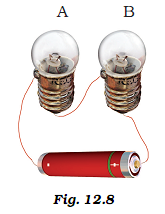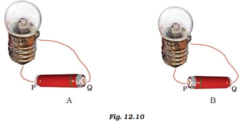 Fig. 12.10 A and B, show a bulb connected to a cell in two different ways.