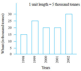 Following table shows the number of bicycles manufactured in a factory during the years 1998 to 2002. Illustrate this data using a bar graph. Choose a scale of your choice