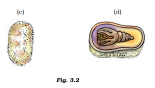 (d) The larvae/caterpillars or silkworms are kept in clean trays along with freshly chopped mulberry leaves.