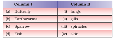 Pick the odd-one-out from each of the groups given below on the basis of respiratory organs. Give reason for your answer.