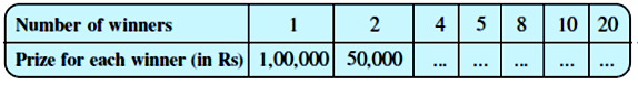 In a Television game show, the prize money of Rs 1,00,000 is to be divided equally amongst the winners. Complete the following table and find whether the prize money given to an individual winner is directly or inversely proportional to the numberof winners?