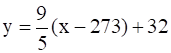 The linear equation that converts Fahrenheit (F) to Celsius (C) is given by the relation,