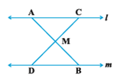 In Figure, L || m and M is the mid-point of a line segment AB. Show that M is also the mid-point of any line segment CD, having its end points on l and m, respectively.