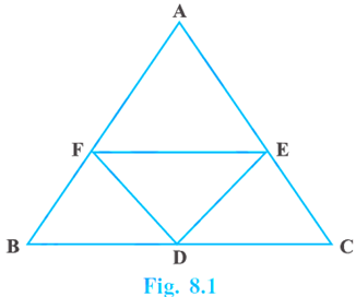 D, E and F are respectively the mid-points of the sides AB, BC and CA of a triangle ABC. Prove that by joining these mid-points D, E and F, the triangles ABC is divided into four congruent triangles.