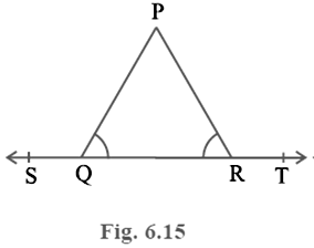 In Fig. 6.15, ∠ PQR = ∠ PRQ, then prove that∠ PQS = ∠ PRT.
