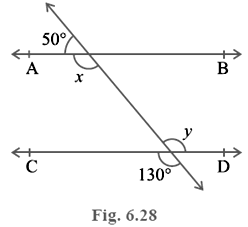 In Fig. 6.28, find the values of x and y and then show that AB || CD.