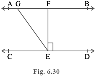 In Fig. 6.30, if AB || CD, EF ⊥ CD and∠ GED = 126°, find ∠ AGE, ∠ GEF and ∠ FGE.