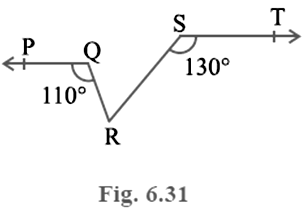 In Fig. 6.31, if PQ || ST, ∠ PQR = 110° and∠ RST = 130°, find ∠ QRS.