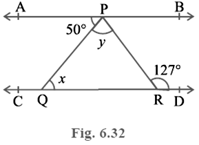 In Fig. 6.32, if AB || CD, ∠ APQ = 50° and∠ PRD = 127°, find x and y.