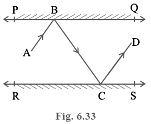 In Fig. 6.33, PQ and RS are two mirrors placed parallel to each other. An incident ray AB strikes the mirror PQ at B, the reflected ray moves along the path BC and strikes the mirror RS at C and again reflects back along CD. Prove that AB || CD.