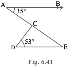 In Fig. 6.41, if AB || DE, ∠ BAC = 35° and ∠ CDE = 53°, find ∠ DCE.
