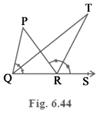 In Fig. 6.44, the side QR of ΔPQR is produced to a point S. If the bisectors of ∠PQR and ∠PRS meet at point T, then prove that ∠QTR =1/2 ∠QPR.