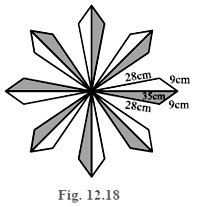 A floral design on a floor is made up of 16 tiles which are triangular, the sides of the triangle being 9 cm, 28 cm and 35 cm (see Fig. 12.18). Find the cost of polishing the tiles at the rate of 50p per cm2