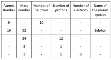 With the help of Tab. Is given below, find out the mass numbers of oxygen and sulphur atoms: