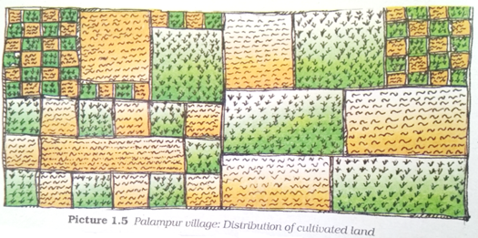 Irrigated | Unirrigated | Land not available for cultivation (Area covering dwellings, roads, ponds, grazing grounds), |