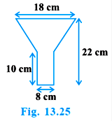 A container, opened from the top and made up of a metal sheet, is in the form of a frustum of a cone of height 16 cm with radii of its lower and upper ends as 8 cm and 20cm, respectively. Find the cost of the milk which can completely fill the container, at the rate of Rs 20 per litre. Also find the cost of metal sheet used to make the container, if it costs Rs 8 per 100 cm2 (Take π = 3.14)