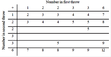 Event : ‘Sum on 2 dice’ | 2 | 3 | 4 | 5 | 6 | 7 | 8 | 9 | 10 | 11 | 12 |