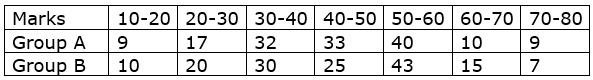 From the data given below state which group is more variable, A or B?