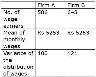 An analysis of monthly wages paid to workers in two firms A and B, belonging to the same industry, gives the following results: