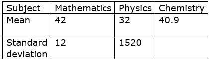The mean and standard deviation of marks obtained by 50 students of a class in three subjects, Mathematics, Physics and Chemistry are given below: