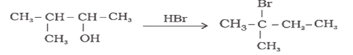 When 3-methylbutan-2-ol is treated with HBr, the following reaction takes place: