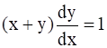 (x + y)dy + (x – y) dx = 0; y = 1 when x = 1