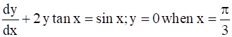 For each of the differential equations in question, find the particular solution satisfying the given condition:
