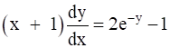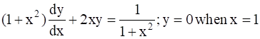 (x3 + x2 + x + 1) dy/dx = 2x2 + x, y = 1 when x = 0