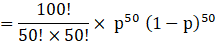 P(x=50)= 100C50 p50 q50