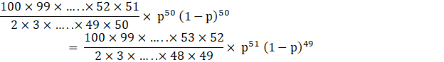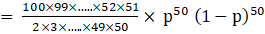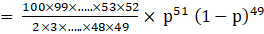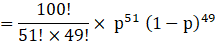 P(x=51)= 100C51 p51 q49