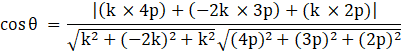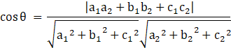 Now, the angle between the lines with direction ratios a1, b1, c1 and a2, b2, c2 is given by