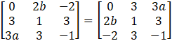 is given to be symmetric, find the values of a and b.