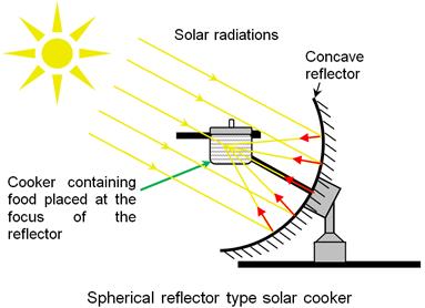 This property of the concave mirror is used in solar concentrators (for e.g. solar cookers) as high concentration of the sun rays generate high amount of heat which farther can be used as a heat source. The diagram below shows the concentration of sun rays