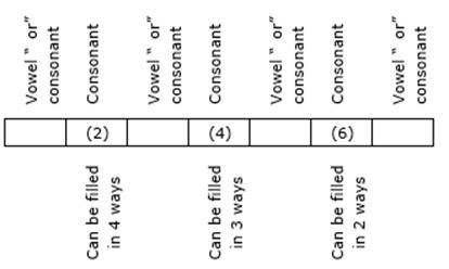And, the other 4 alphabets i.e. the remaining 1 consonant and 3 vowels is to be placed in 4 places in 4P4 = 4! = 24 ways.