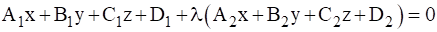 (1 + λ)x + (-3 + 2λ)y + (1 + 3λ)z + 6 + 5λ=0 (2)
