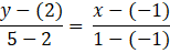 Using this formula, equation of the line A(-1,2) B =(1,5)