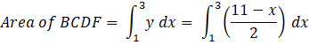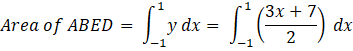 For finding this area, we can consider the lines AB, BC and CA which are the sides of the given triangle. By calculating the area under these lines we can find the area of the complete region.