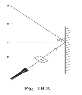 A small hole P is made in a piece of cardboard. The hole is illuminated by a torch as shown in Fig. 16.3. The pencil of light coming out of the hole falls on a mirror.
