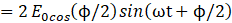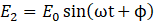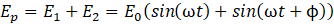 The electric filed from the light at each of the sources S1 and S2 can be written as,