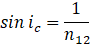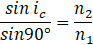 Let us consider the condition when the angle of incidence is equal to critical angle, .