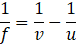where f is the focal length, u is the object distance and v is the image distance. All quantities are measured with the cartesian sign convention (the sign convention in NCERT).
