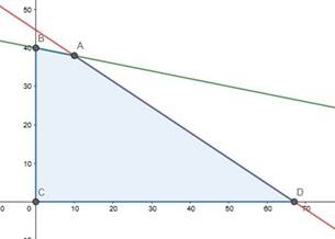 The corner points of feasible region are A(10,38) ,B(0,40) ,C(0,0), D(67,0) . The values of Z at the following points is