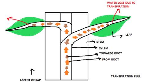 Transpiration pull is the process responsible for the upward movement of water against gravity even for a tree of height up to 20m.